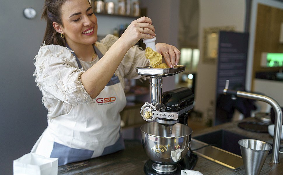 Als Zubehör sind der grossag Wurstfüll-Vorsatz und das grossag Spritzgebäck-Vorsatz separat erhältlich.