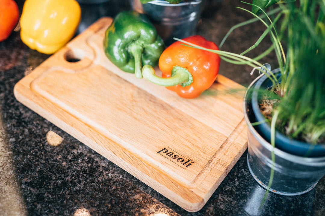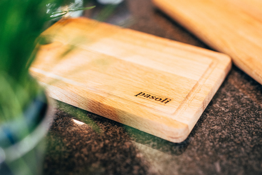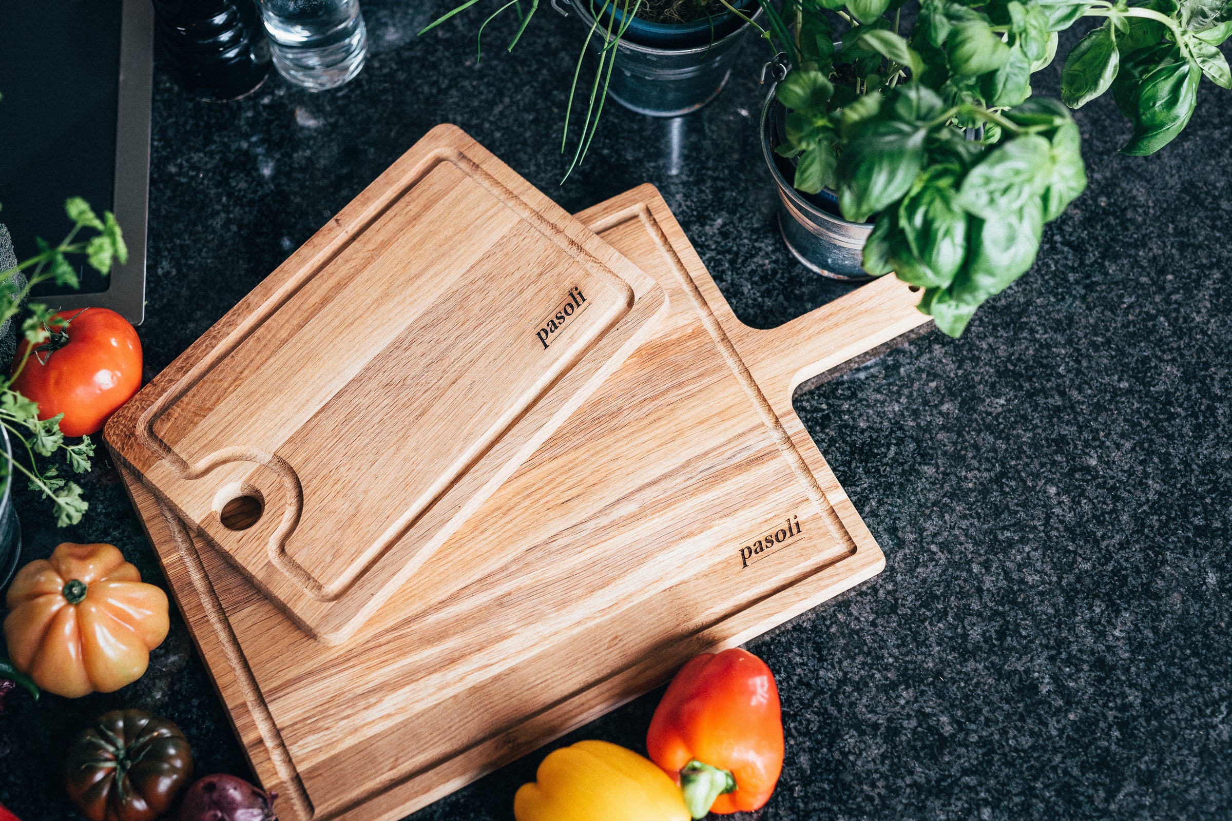 pasoli Schneidebrett aus robusten Eichenholz 30 x 20 x 2 cm - Messer schonend - pasoli GmbH